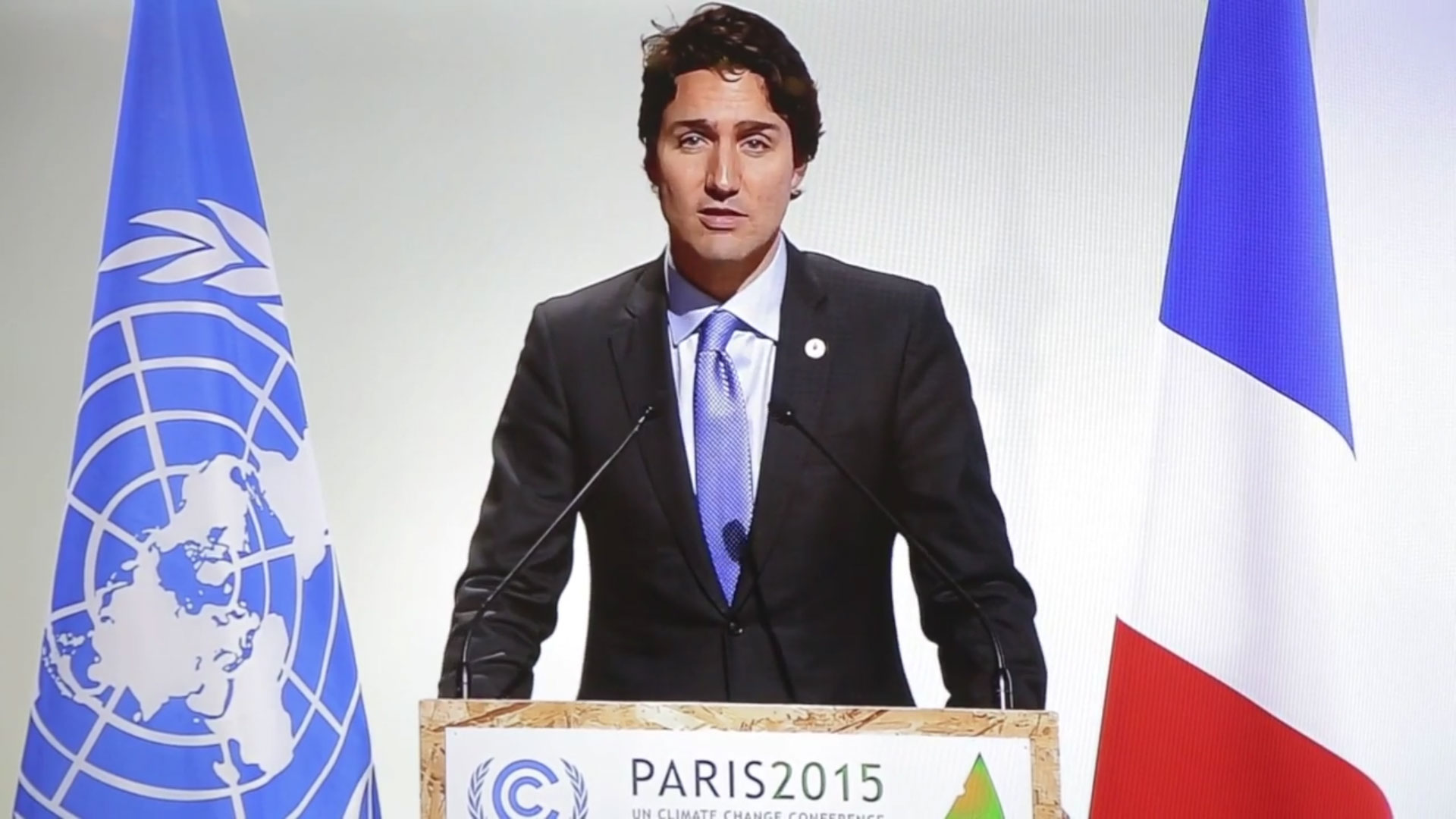Justin Trudeau speaking to the UN COP21 climate summit